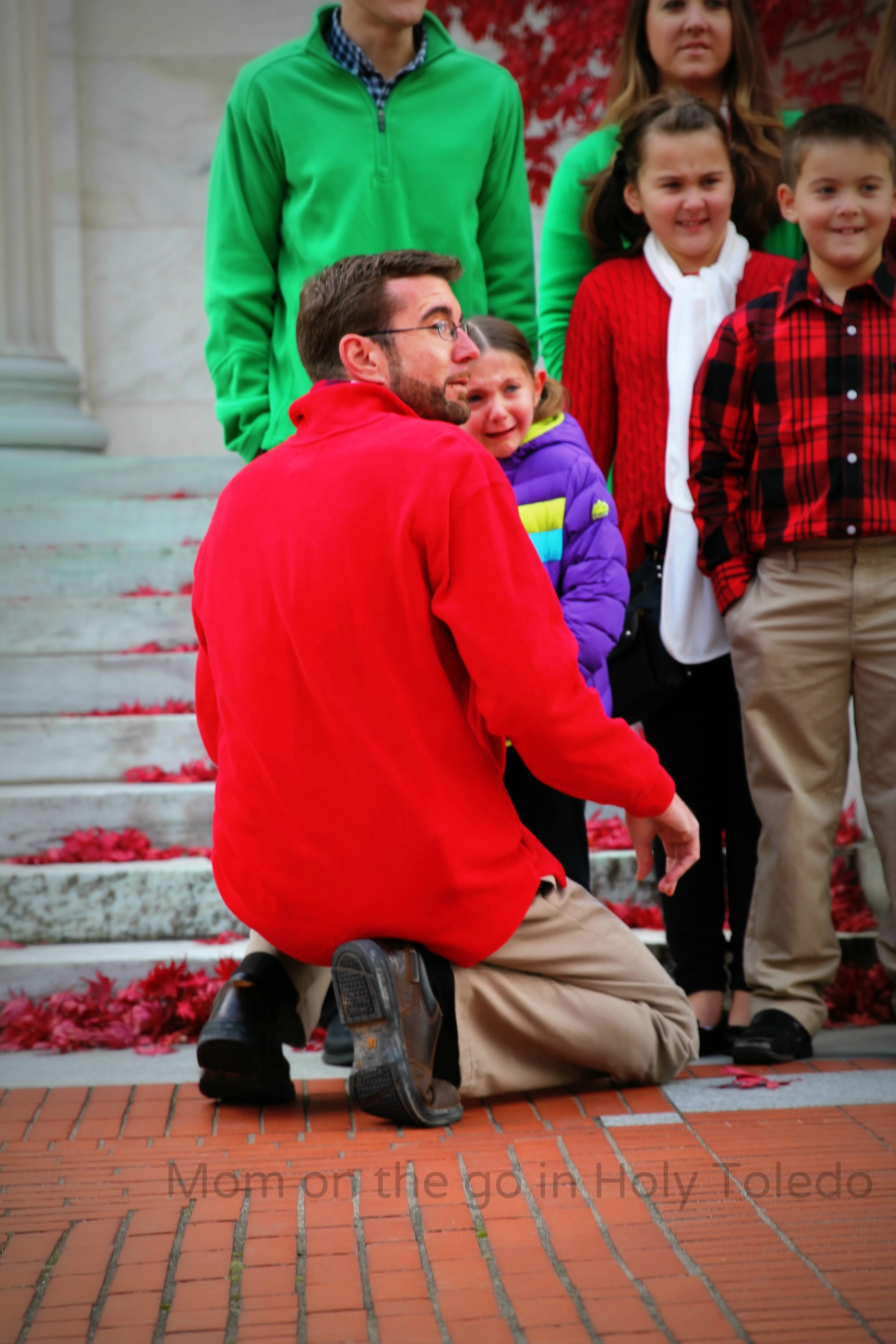 We asked our little one to please take off her coat just for the picture and then she could put it back on. And the consequence of that request was a tad surprising. Though, I should add that it was unseasonably cold that early Nov. day. It was 22 degrees that morning, so I can’t say I blame her for refusing to take off her coat. So then this happened….