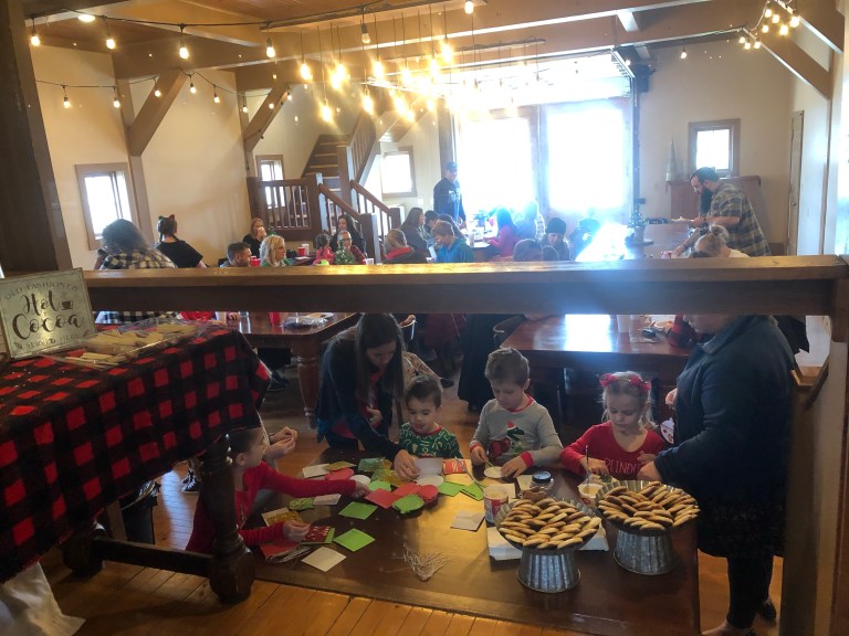 After our bellies were full we got to work, at the craft table making an ornament that now hangs on our tree reminding us of this awesome morning. Followed by cookies decorating!