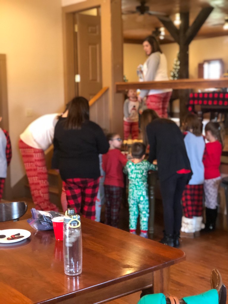 Hot Cocoa Bar, pancakes piled high with whipped cream & sprinkles, cookie decorating, craft table, & more! It was legit a child’s dream come true! Oh, and best part, everyone got to come dressed in the PJs!!