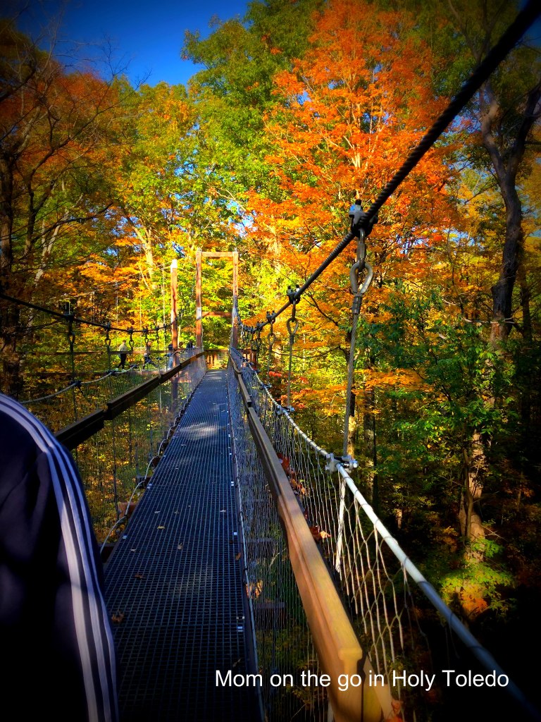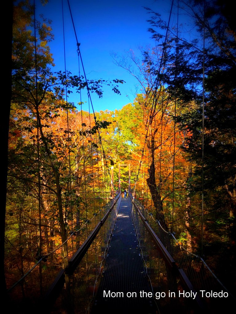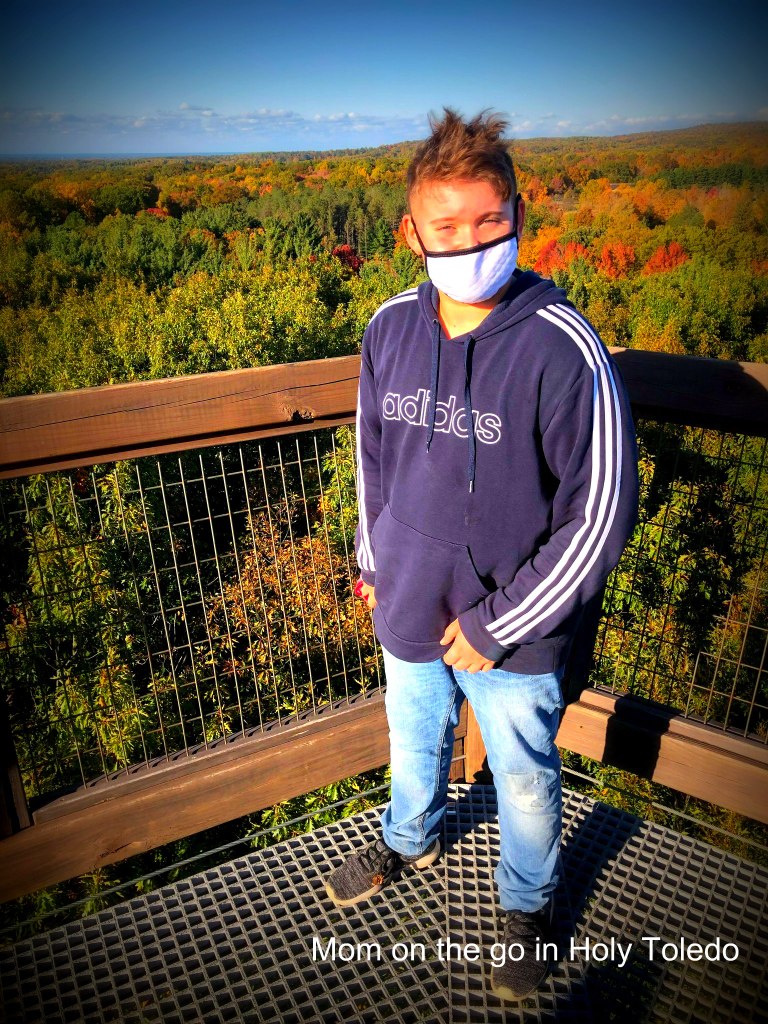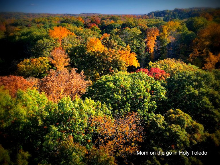 When we arrived at the Emergent Tower we were fortunate that there wasn’t too long of a wait, we masked up, and began our climb 120 feet or approximately 12 stories. We stopped at the various landings to read the educational signs that helped the children understand how exactly a tree can sway with the wind without breaking or falling over. And then the piece de resistance, THAT GORGEOUS AUTUMN VIEW!!