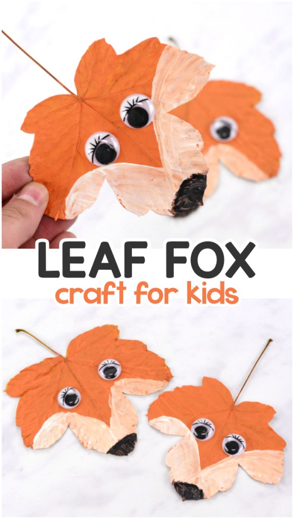 Take a standard leaf and flip it upside so that the longest tip is facing down—this is where your fox’s nose will be. Glue facial features such as a small fuzzy pom-pom to the tip and small triangular pieces of construction paper to the outer edges to resemble ears. Finish decorating your animal with eyes drawn on construction for a friendly fox.