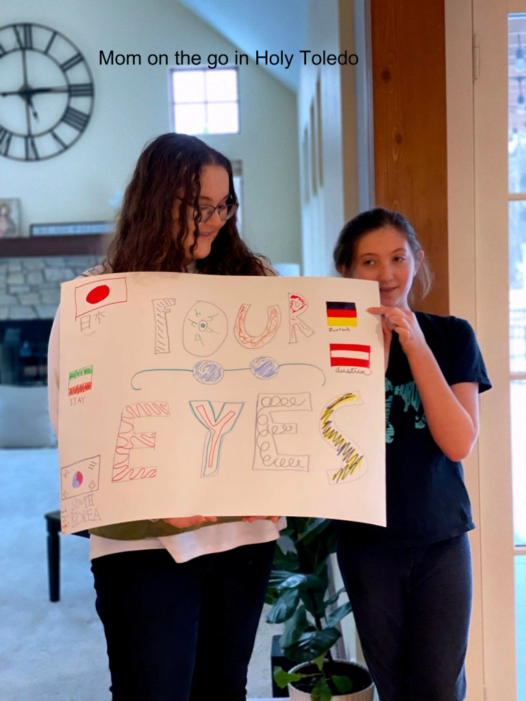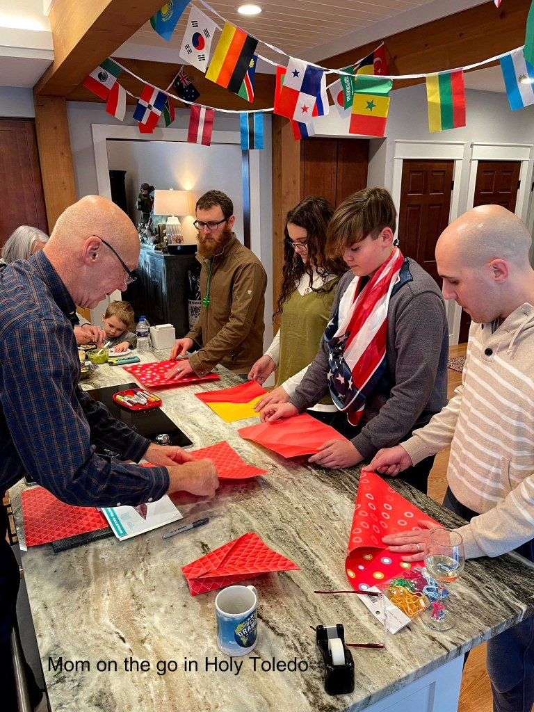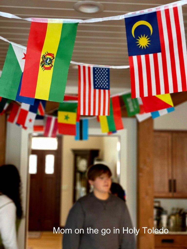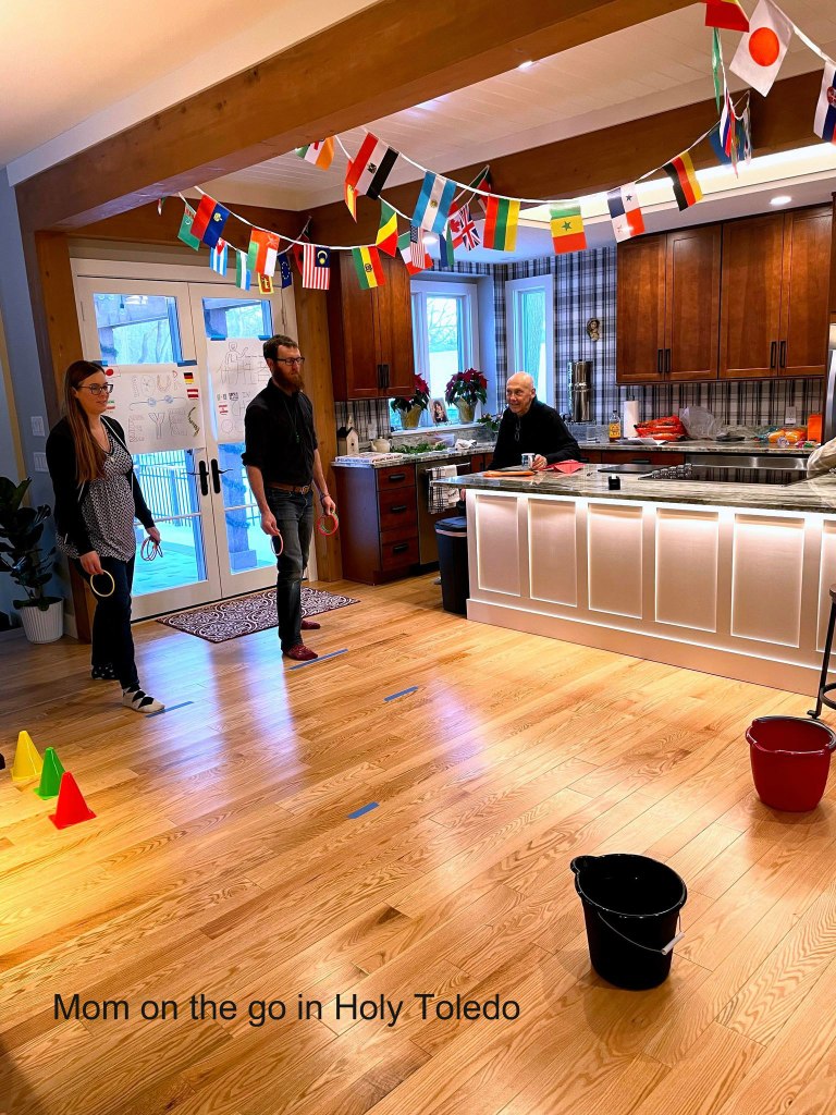Next, up, captains were each assigned and each pulled names to see what athletes would be on their team. Yours truly was a captain and I scored big time on my team and had not only the 4-year-old but also the preggo momma (who proved extremely beneficial for the ring toss games). Each team then decided on a name and decorated their teams’ poster board accordingly with each of the countries they would be representing.
