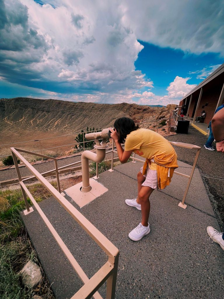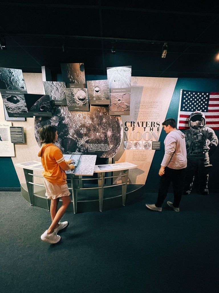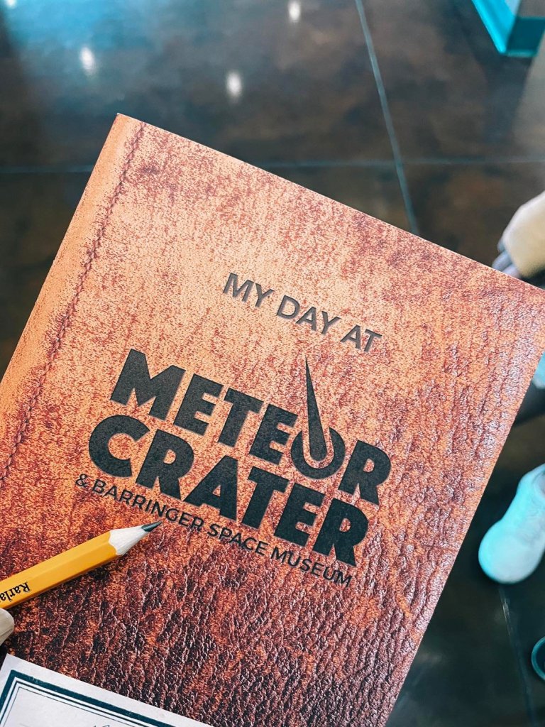 We fully immersed ourselves in the history and science behind the crater with all the great hands-on activities. And it was here that our youngest filled in the majority of her Meteor Crater booklet, (that she turned into the gift shop for a prize when it was completed! Worth it.)