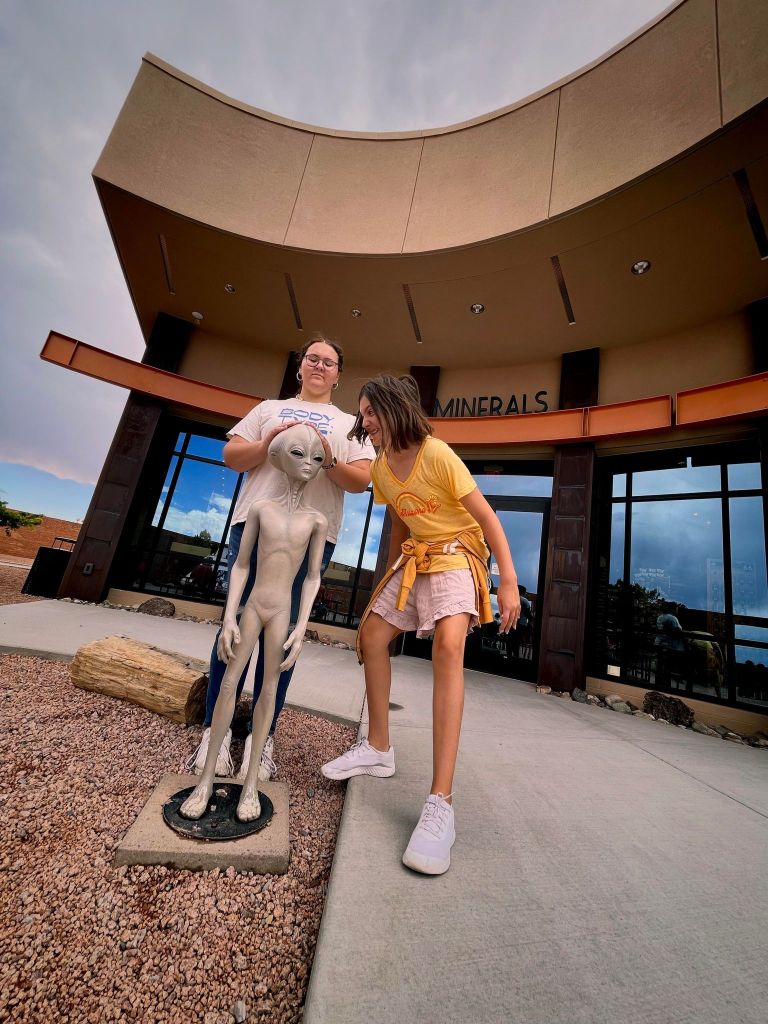 Last stop (well, second to last stop, before the restrooms of course-by the way they are extremely clean, the best restrooms on the entire trip thus far!). So we have been in and out of a few gift shops along our journeys and we just pursued and didn’t purchase at the other shops and I’m glad we waited, this gift shop has it all…Route 66, Arizona, Naive American, Meteor Crater paraphernalia, you name it…and something for all ages, kiddos saved their money and spent it here!