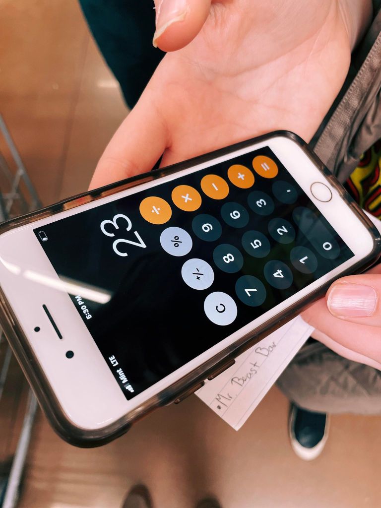 - Each has their calculator on their phone to keep track of their items as they enter the cart.
