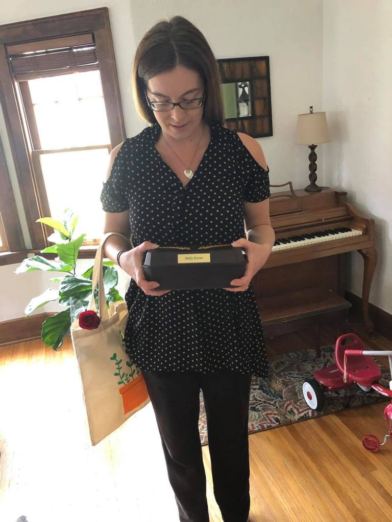 We had a missed miscarriage and we were then to wait for my body to finally recognize the loss of the baby. I opted for a D&C surgery, as my body was not doing what it should and I was breaking out into hives. After carrying our little love for 11 weeks we brought our little one, in a beautiful box provided by the hospital, strapped into big brother’s car seat, home. When we arrived home we transferred our child to the beautiful burial box my parents purchased for us (from Heaven’s Gain Ministries). We then went to Nana and Papa’s to pick up our son. Our three year old at times wonders what happened to the baby in mommy’s tummy. We tell him our baby is with Jesus and we can keep asking for more babies to love.