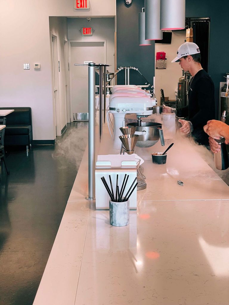 And then comes the fun part, watching the base and other ingredients mix in with the liquid nitrogen.