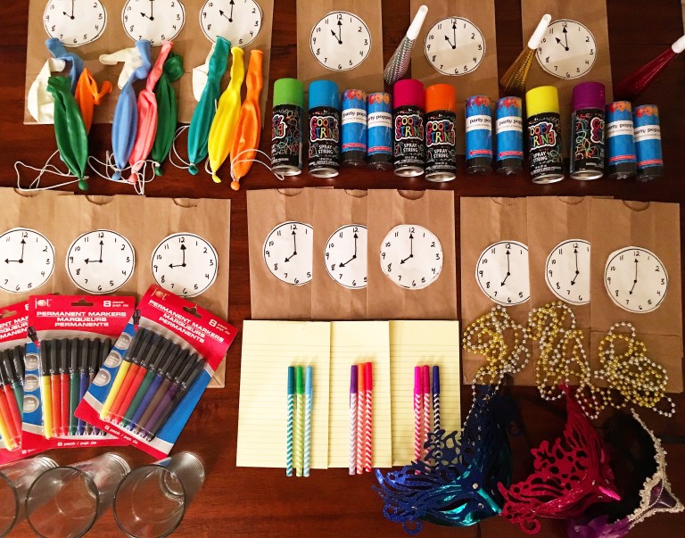 Who’s staying in for New Year’s Eve? Whether staying in to save money, don’t feel like being in crowds, or simply wanting to be in bed before midnight, you can still have fun!! Throw a mini New Year’s Eve party. Put together Countdown Bags full of goodies to help you Countdown each hour until the New Year (or half hour…depending on the age of your kiddos ).