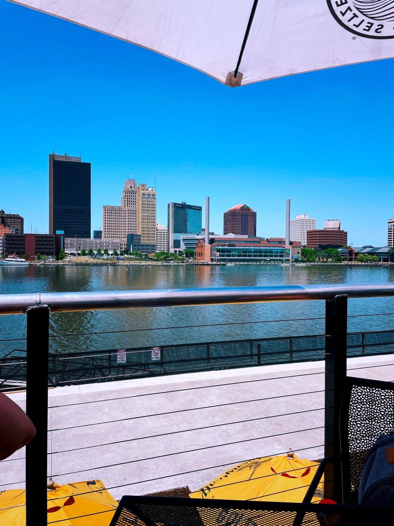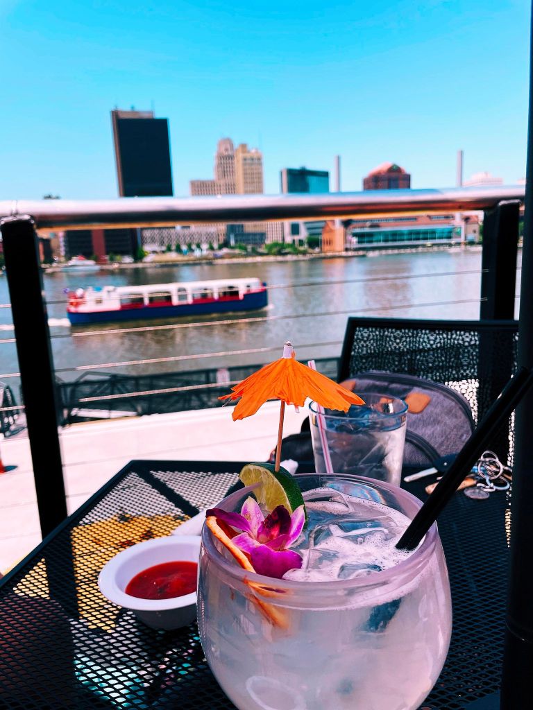 The weather is finally perfect for dining alfresco! Who doesn’t enjoy sitting out on a patio? Let’s be honest, when you are in direct sun with no breeze it can become uncomfortable quickly, am I right?! What if I told you I literally found the perfect patio in Toledo, I’m talking about a comfortable breeze coming off of the water, epic view, and shade!