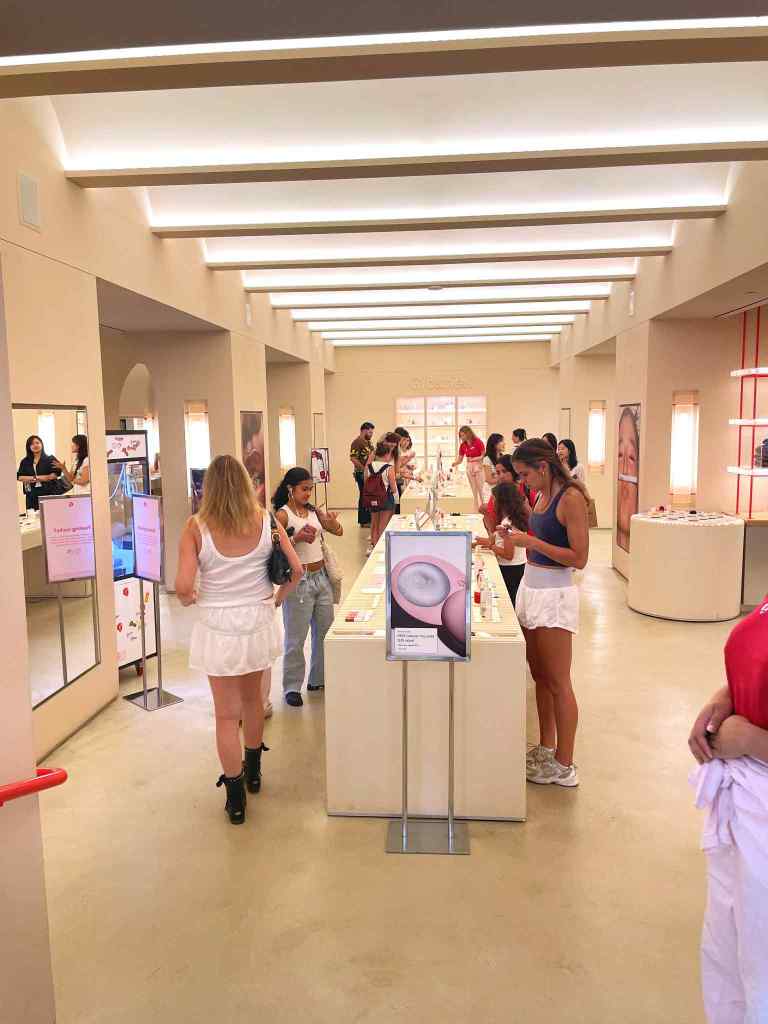 Glossier is a skincare, makeup, and fragrance company that emphasizes the importance of proper skincare first, then makeup. My eldest shopped while the rest of us found the “dad bench”, lol!