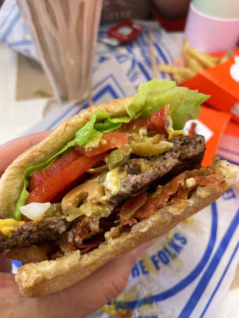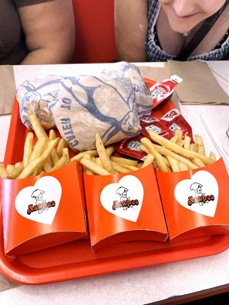 In the Midwest in the 1920s and 1930s, chopped or sliced green olives were a popular topping. This was before lettuce and tomato became the default. Kewpee’s menu has remained relatively unchanged for decades, and the inclusion of olives reflects a commitment to its vintage flavor profile. And I’ll be honest, the sliced green olives, relish, pickles, cheese, tomato, lettuce, ketchup, mustard, mayo, onions, and bacon tasted amazing!!! And I couldn’t get over how fresh the tomato and lettuce tasted. The tomato even tasted like an actual tomato. Sorry, Dave, sometimes your tomatoes are lacking! And as a Toledoian, we know our tomatoes, am I right, Dei Fartelli?