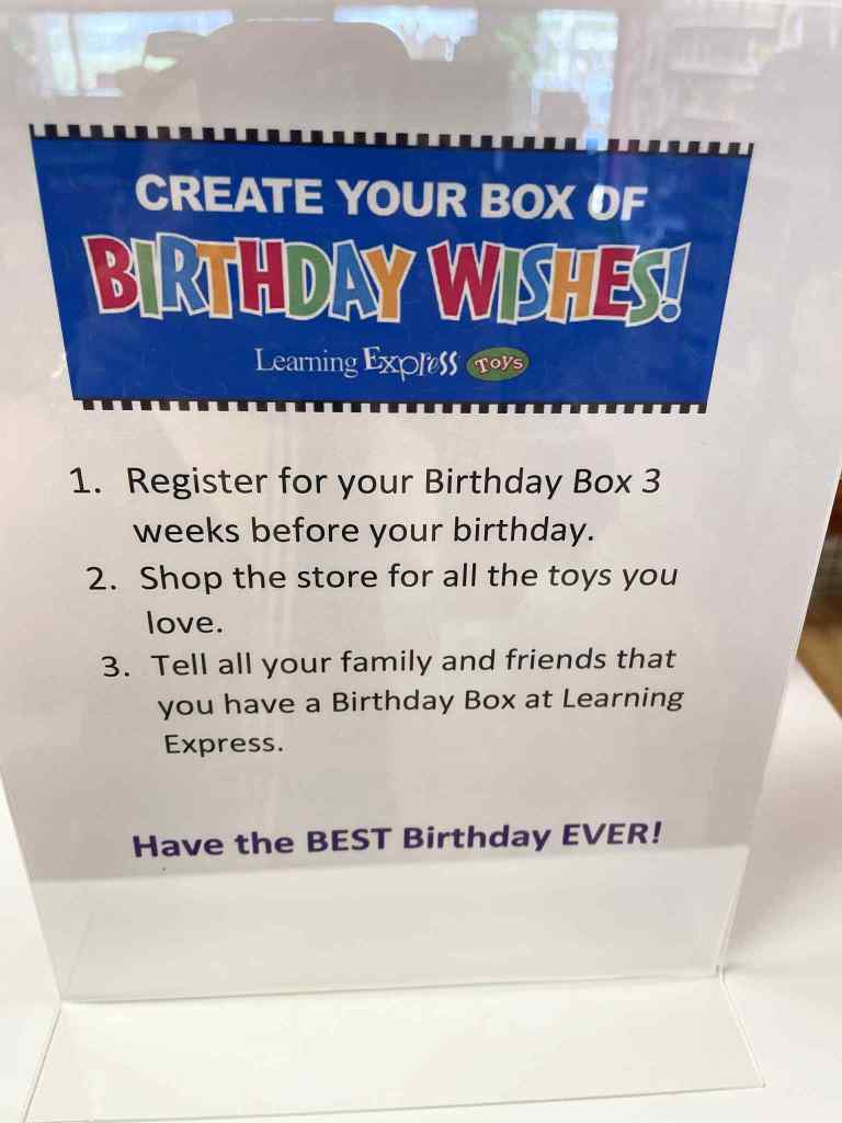 The Birthday Wish Bin at Learning Express takes the stress out of birthdays and puts the joy back in. Whether you’re the parent planning the party or the guest picking out a gift, it makes the experience fun, thoughtful, and totally stress-free.