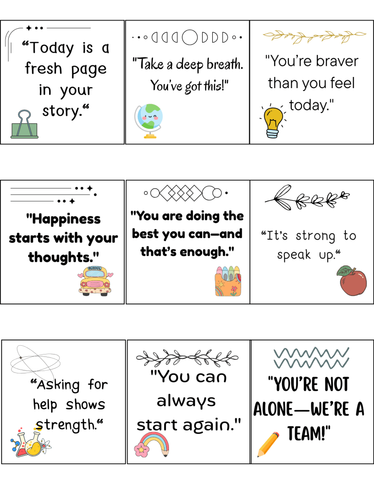 Back-to-school isn’t just a shift in routine; it can be an emotional rollercoaster for little minds. Transitions like these can stir up anxiety, fear of the unknown, or even self-doubt. It’s important to remember that mental health starts young, and small, consistent gestures, like a kind note in their lunchbox, to help build emotional resilience. When kids feel seen, heard, and supported, it strengthens their confidence, self-worth, and overall well-being. Your daily check-ins, hugs, and yes, even a simple note, matter more than you know. Your time is valuable and limited. To help, here are some kid-approved lunchbox ideas, and below you’ll find positive mindset lunchbox notes that you can click on and print off 27, a month’s worth at your fingertips!