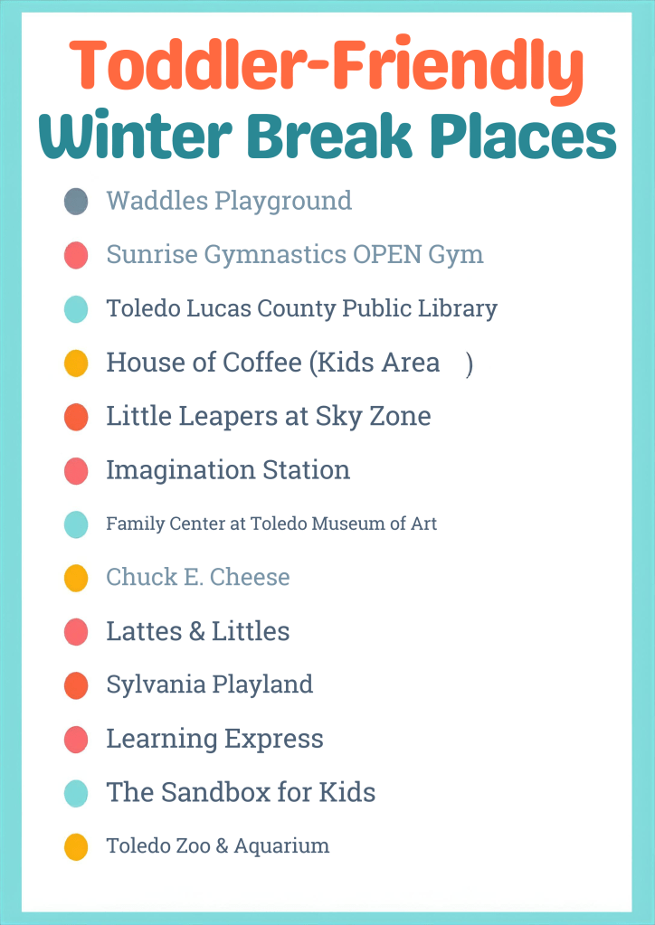 Winter break doesn’t have to be stressful or boring, with the right mix of indoor play, creative activities, and experience-based gifts, toddlers can stay happy, active, and engaged all season long. From climbing, bouncing, and digging in sand to exploring art, science, and storytime, Toledo offers plenty of weather-proof spots perfect for little ones. Gift cards to these local favorites not only give families flexibility but also create memories that last far beyond the holidays. So grab a gift card, plan a visit, and enjoy a winter break filled with fun, learning, and laughter!
