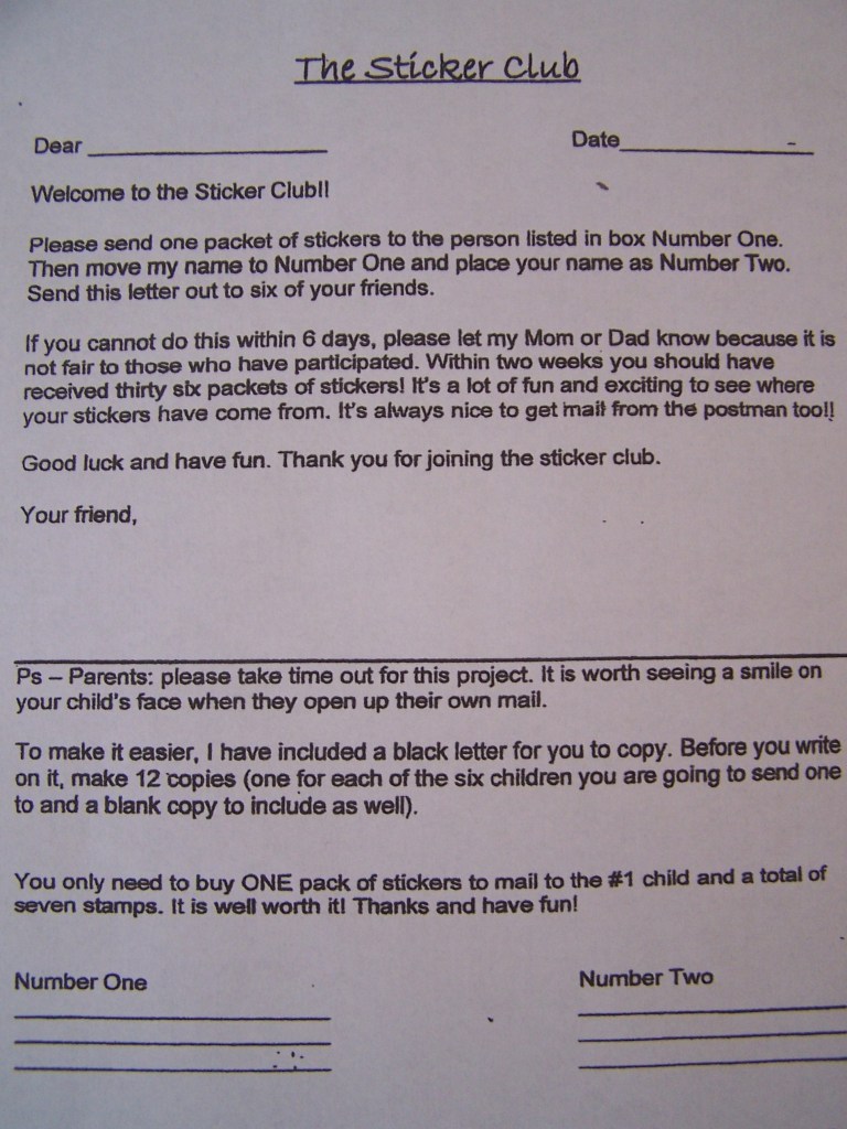 This is such a fun idea. My two older kiddos each received this stick club information in the mail about two weeks ago. The problem is the sheet request that you send it within 6 days, ahhhh. So, it has taken me a minute or two to kick it old school and get ink, paper, envelopes, and stamps. It just occurred to me as I type this that I could have scanned it and sent it via email to the other kiddos (but that would have been too easy and cheap). So, keep your eyes open for an envelope in the mail, chances are good your kiddos might receive one and if they don’t you could start one.
