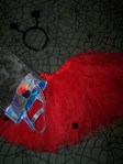 There is a method to this mama’s madness… I have decided to lay each costume out with accessories so that I can carefully review each for any holes, stains, missing pieces, etc. After the review each will be sent on their necessary mission, whether it be to the laundry room, rag bin(future hairball/dog puke cleaner-upper), patching place (nana’s house to be sewn), or, for those few fortunate costumes, on to next years inventory.