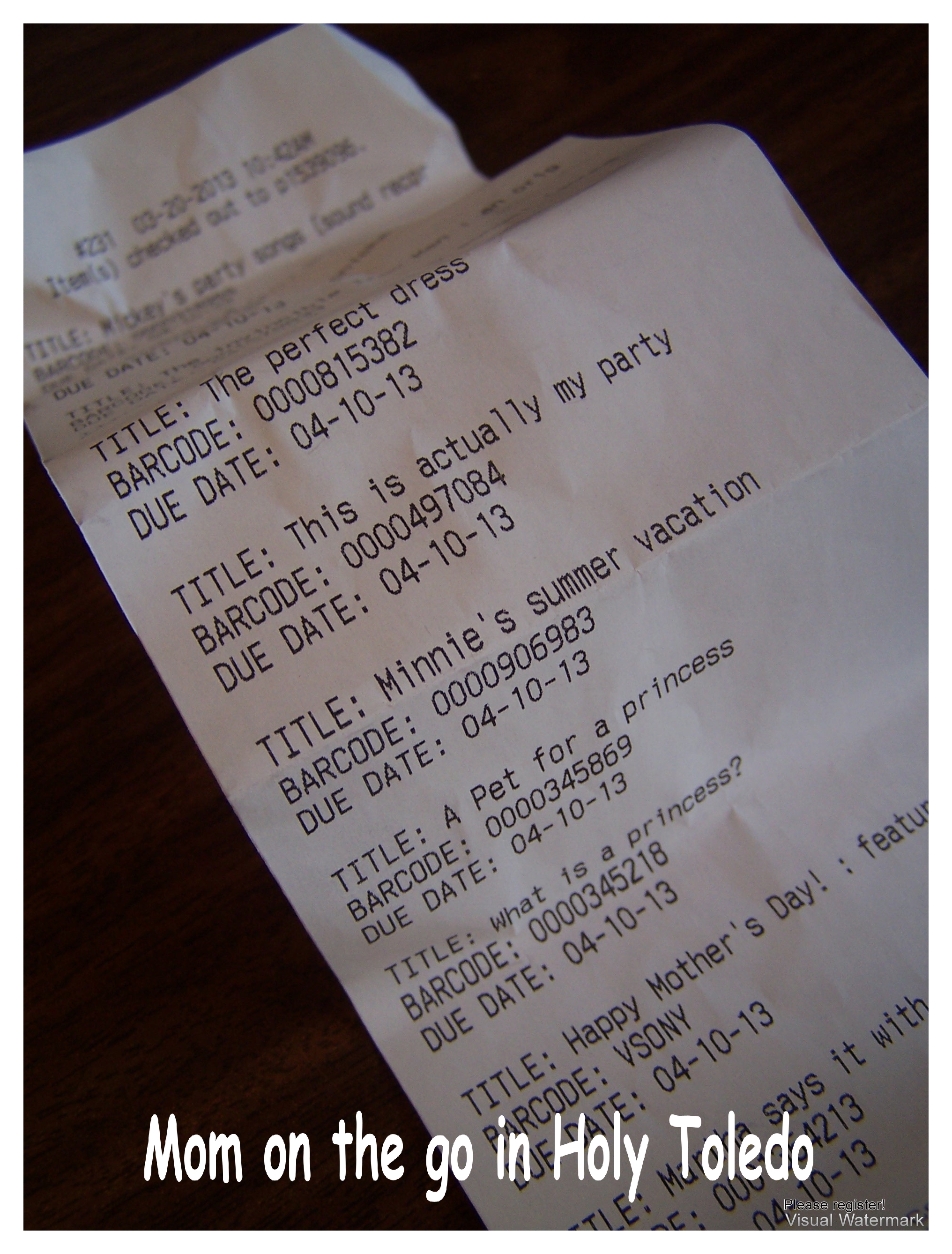 Fast-forward to a week later and it is time to go back to the library. Have kiddos take out their receipts and depending on their age; have them either count how many books need to go back and how many are in their tub, or, if you have a reader they can simply check off the books that are in their tub. If there are any items missing the child is responsible for locating them. We have a new rule in our home, if you do not return ALL items the next week you will not be able to checkout anything in the future until that/those items are located. And if there are fines that occur they can work off their fine by going above and beyond their chores and helping around the house.
