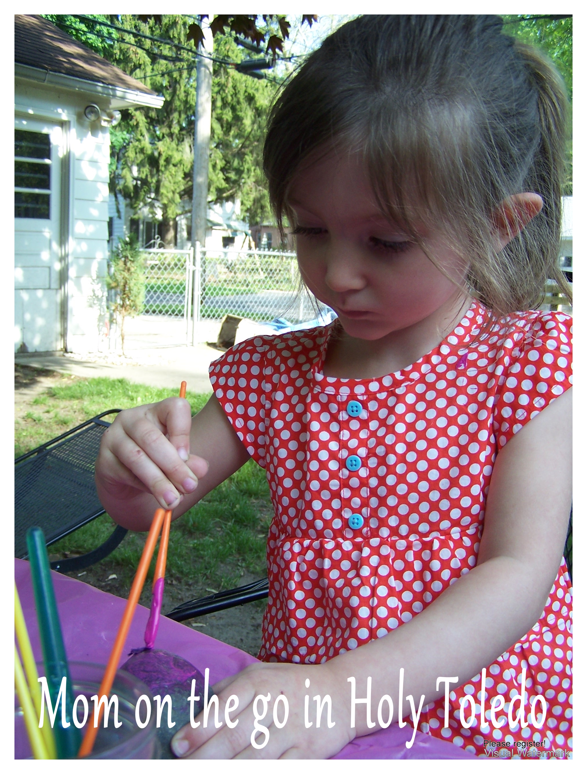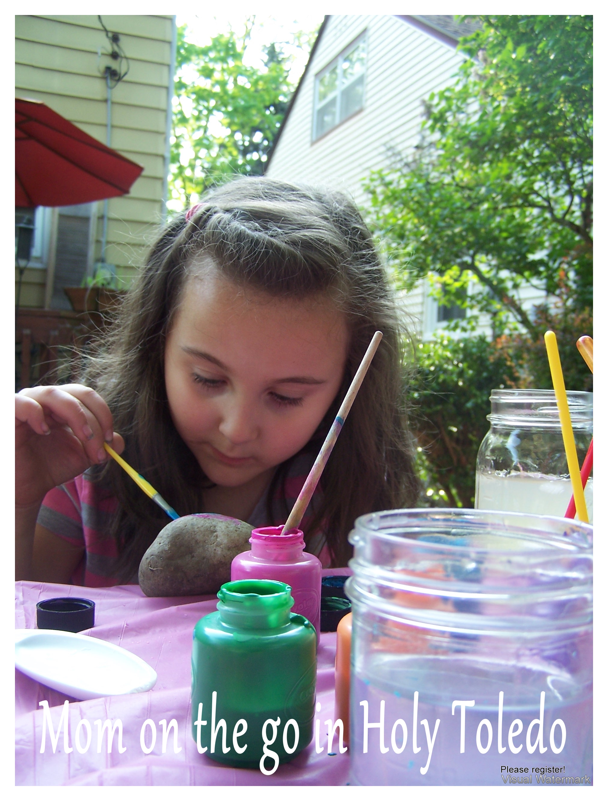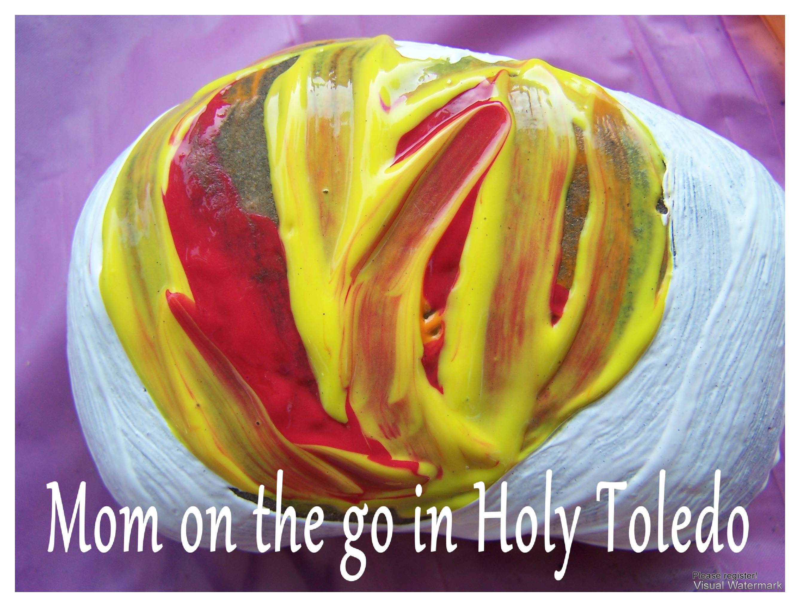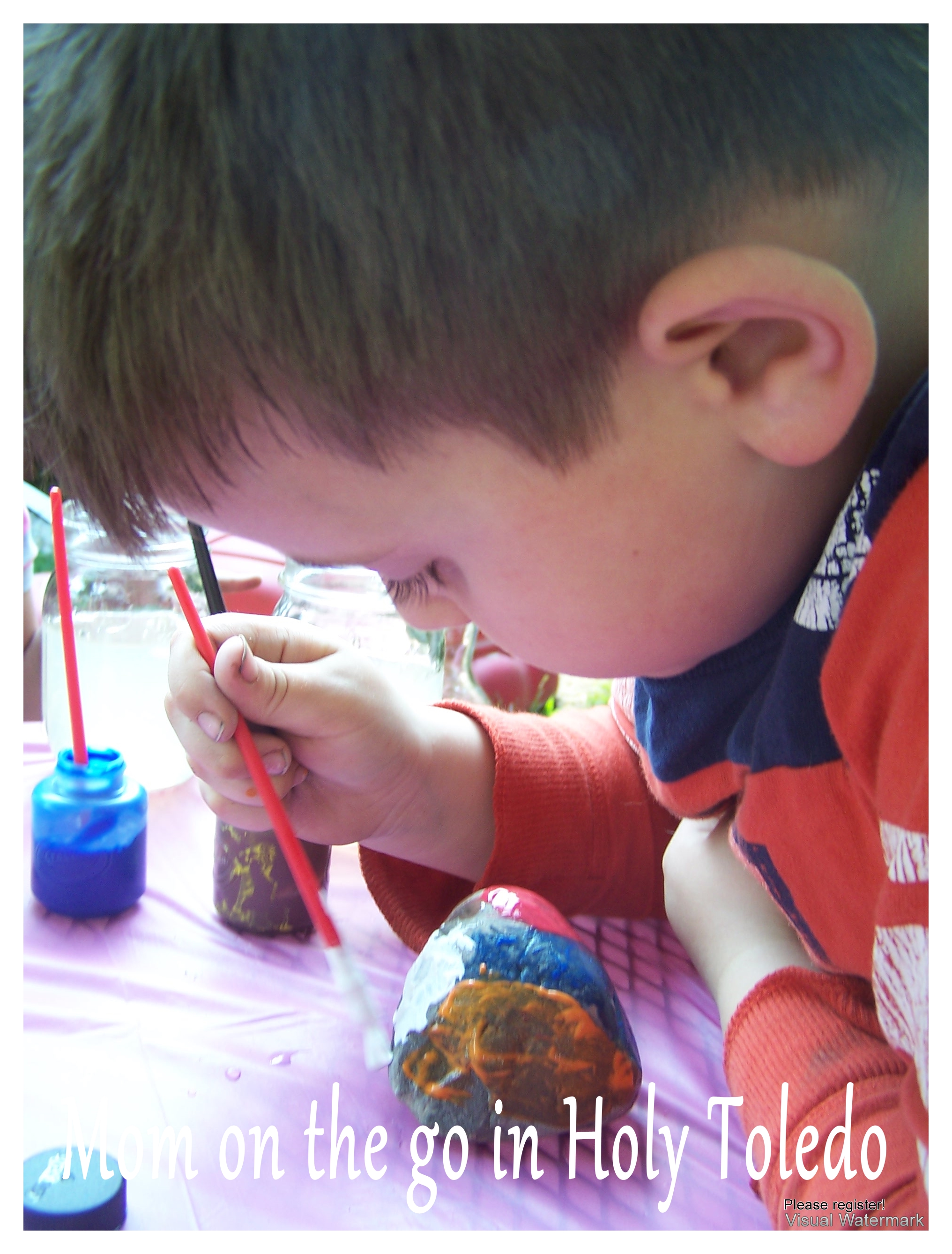 The children, though excited to plant their garden are a little sad to see their plants move outdoors. So in an effort to make the transition a little smoother they painted rocks to place in the veggie garden. So they went to town painting rocks to brighten up the garden with some color, to keep the plants company, and most importantly to put their little hearts at ease…..