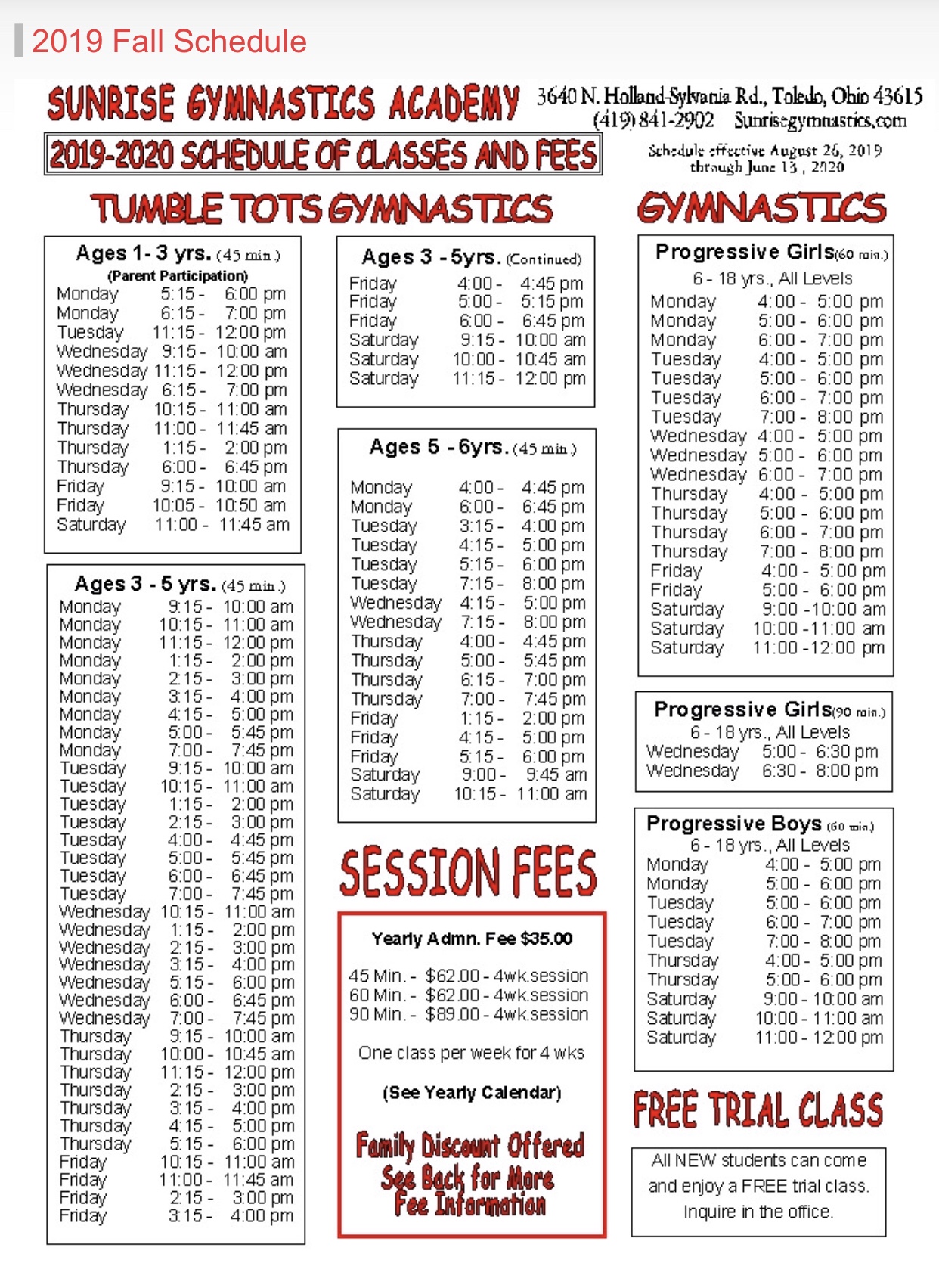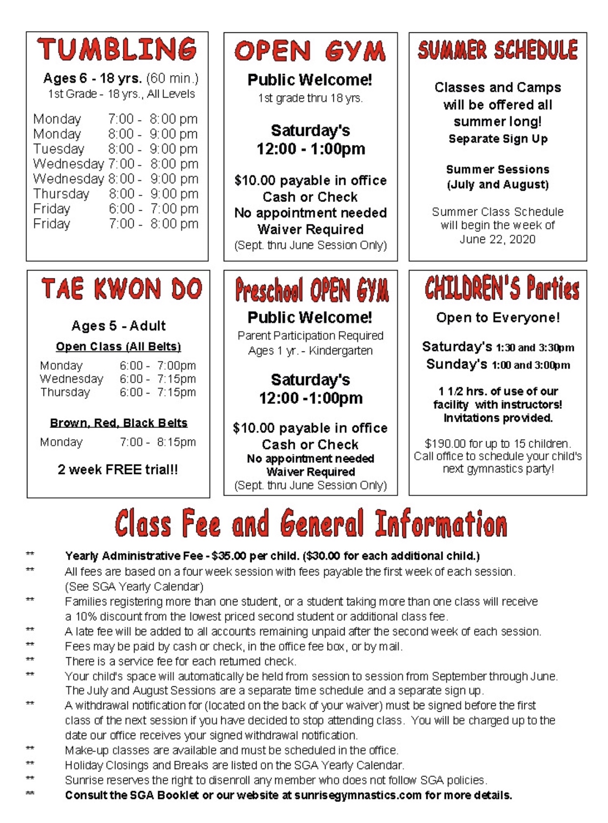 Classes: Tumble, Gymnastics, Tae Kwon Do