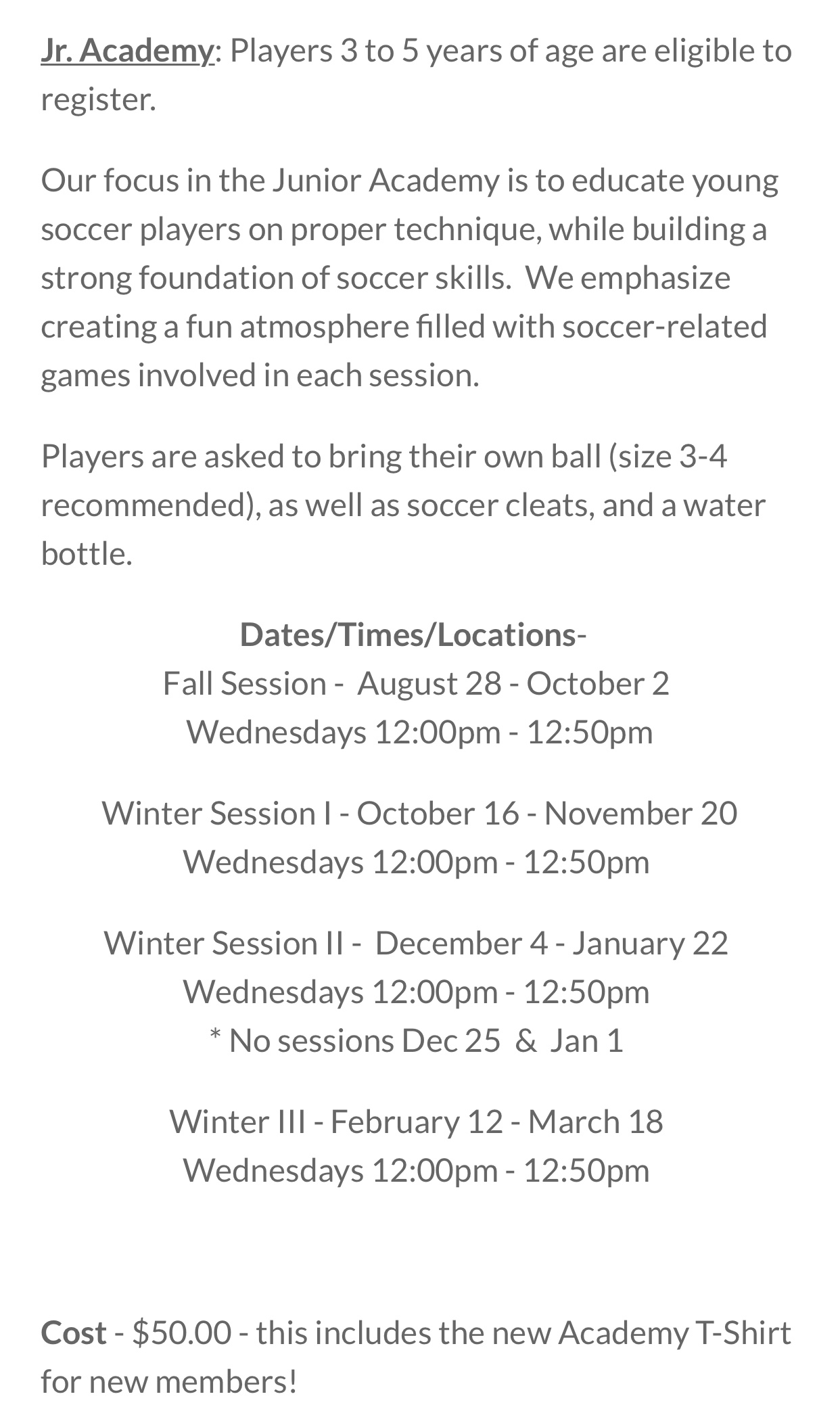 Pacesetter Soccer Club Offers Jr Day Academy for 3-5 yr olds