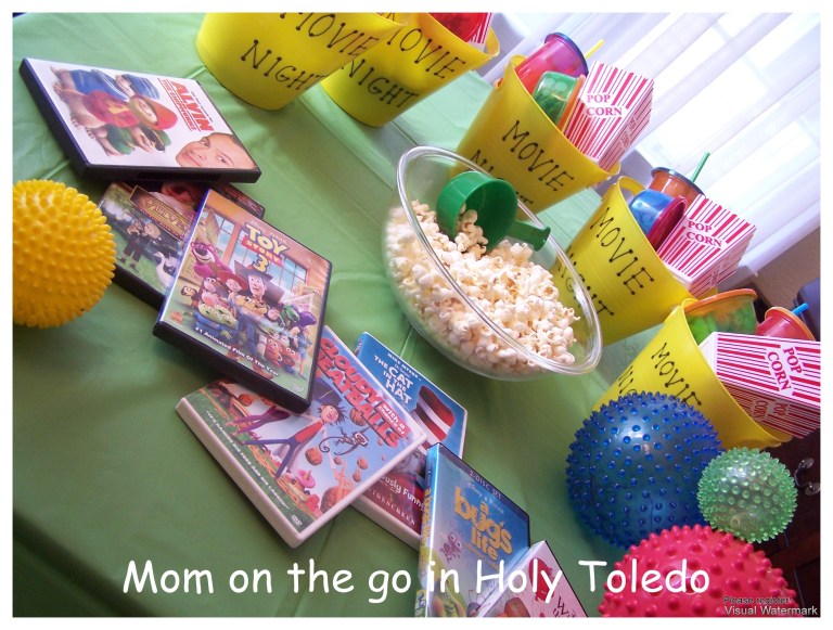 Though, I understand and realize that running from one relative to the next, one friend’s to the next, and one activity to the next can become exhausting. So, since it was toward the end of their visit and the kiddos had been on a sporadic schedule, including sleep schedule, and their mommy had to have been getting towards her wit’s end (though she would never show it, she has such poise, no matter what the situation) I tried to think of a relaxing activity for both the kiddos and moms. Then it came to me, Movie Night!!