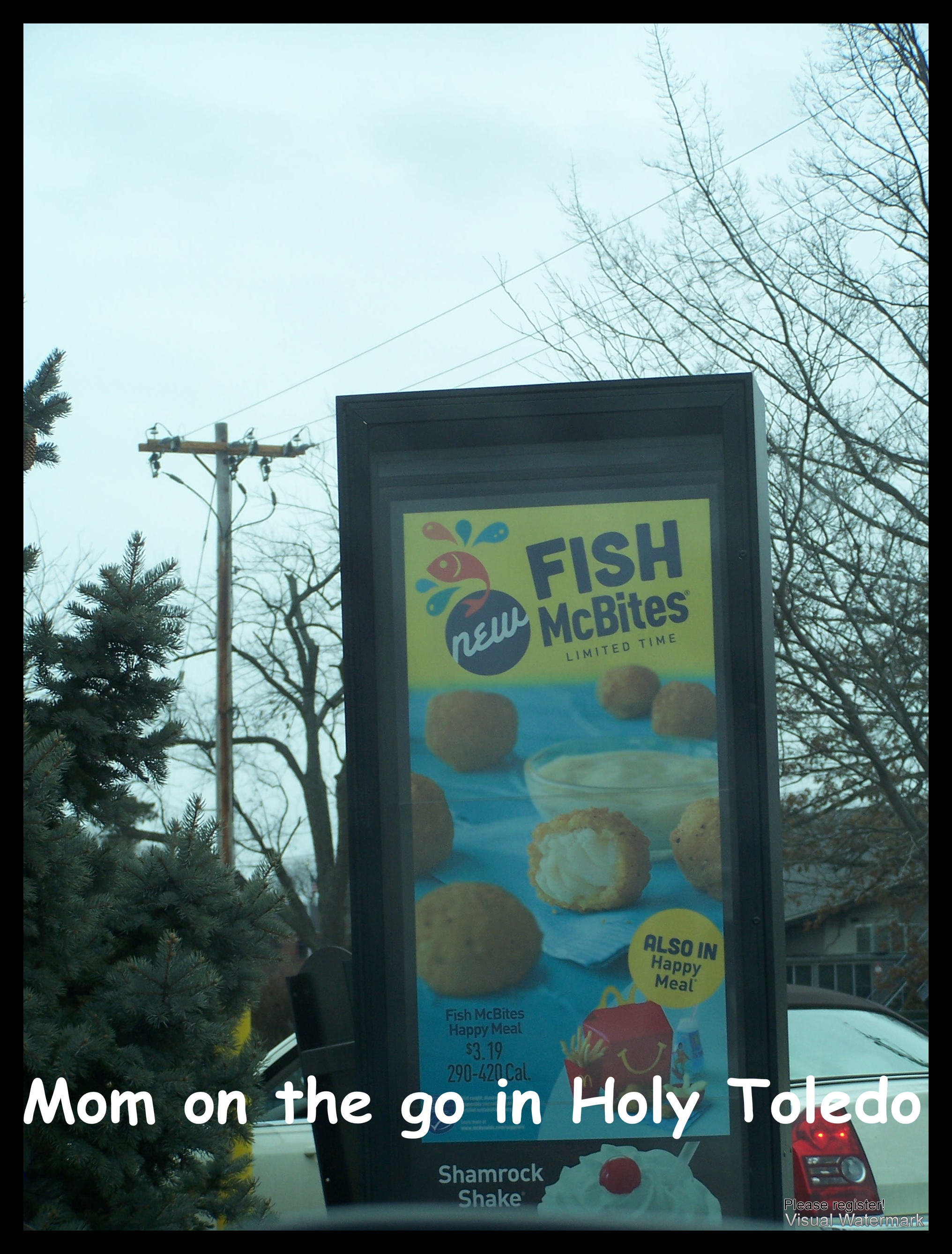 I don’t care what anyone has to say, when you are in the throes of a ‘to do’ list with a preschooler and toddler becoming restless in the backseat after just coming off of an intense grocery shopping spree eating in the car quickly becomes an embraceable solution. So I pulled into the nearest McDonald’s promising the kiddos Happy Meals since they were so good while I ran errands. Then I remembered, it is Lent. Shoot! How does a mom back pedal from that promise? While trying to determine how I was going to explain to the children that McDonald’s ran out of Happy Meals and consequently, in lying to my children added Confession to my ‘to do’ list. But as I came around the curb I saw it, it was beautiful, a sign that indicated that Fish McBites are in Happy Meals!