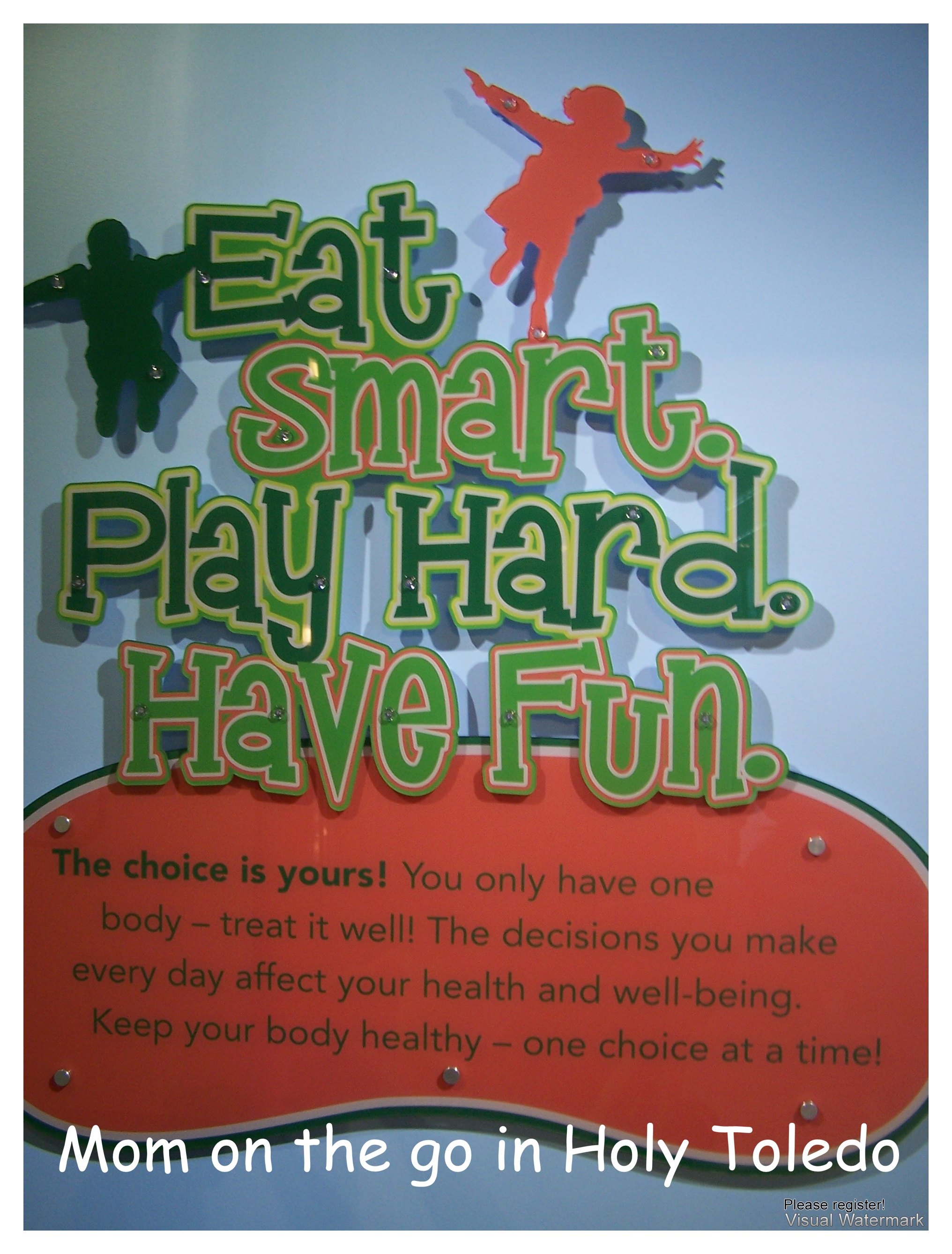 Also while you are there be sure to go downstairs and checkout Eat it Up! The kiddos can learn so much about the food they consume, how calories are burned, they can smash their food, make a food person, and so much more…..
