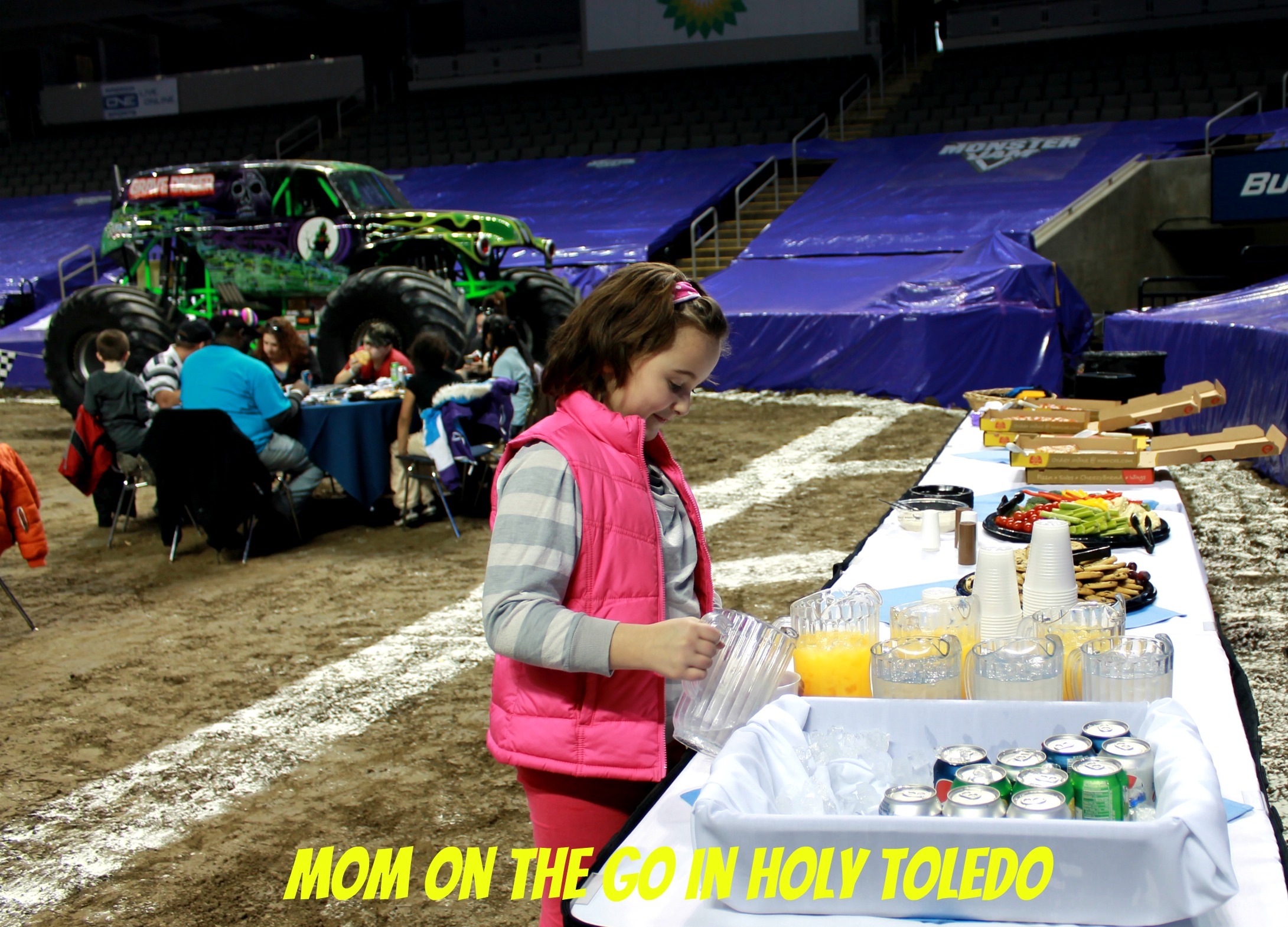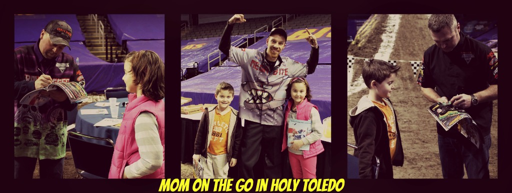 My most favorite thing to do on this planet is to enjoy new experiences as a family. And yesterday’s experience ranks in my top ten! Yesterday we had the opportunity to attend Monster Jam! But wait, it gets better. First we had Pizza in the Pits! The kiddos got to dig in the dirt, color, play, see the trucks up close, eat pizza and other yummy treats, and best of all, meet the drivers and get autographs!!