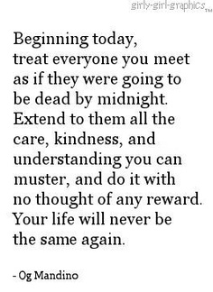 See, the moment you remove your attention from yourself and put that thought and energy into doing good for others through acts of kindness you are reminded of what truly matters in life. Random acts of kindness is a way to keep you grounded and you never know just how much your act of kindness means to others…it might be the one act that prevents someone from making the biggest mistake of their lifetime.