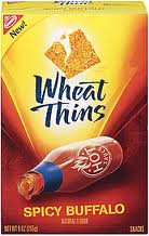 - I have recently formed an obsession with Spicy Buffalo Wheat Thins. I like to crunch then up and place them over lettuce and then crumble a little blue cheese on top, YUM!