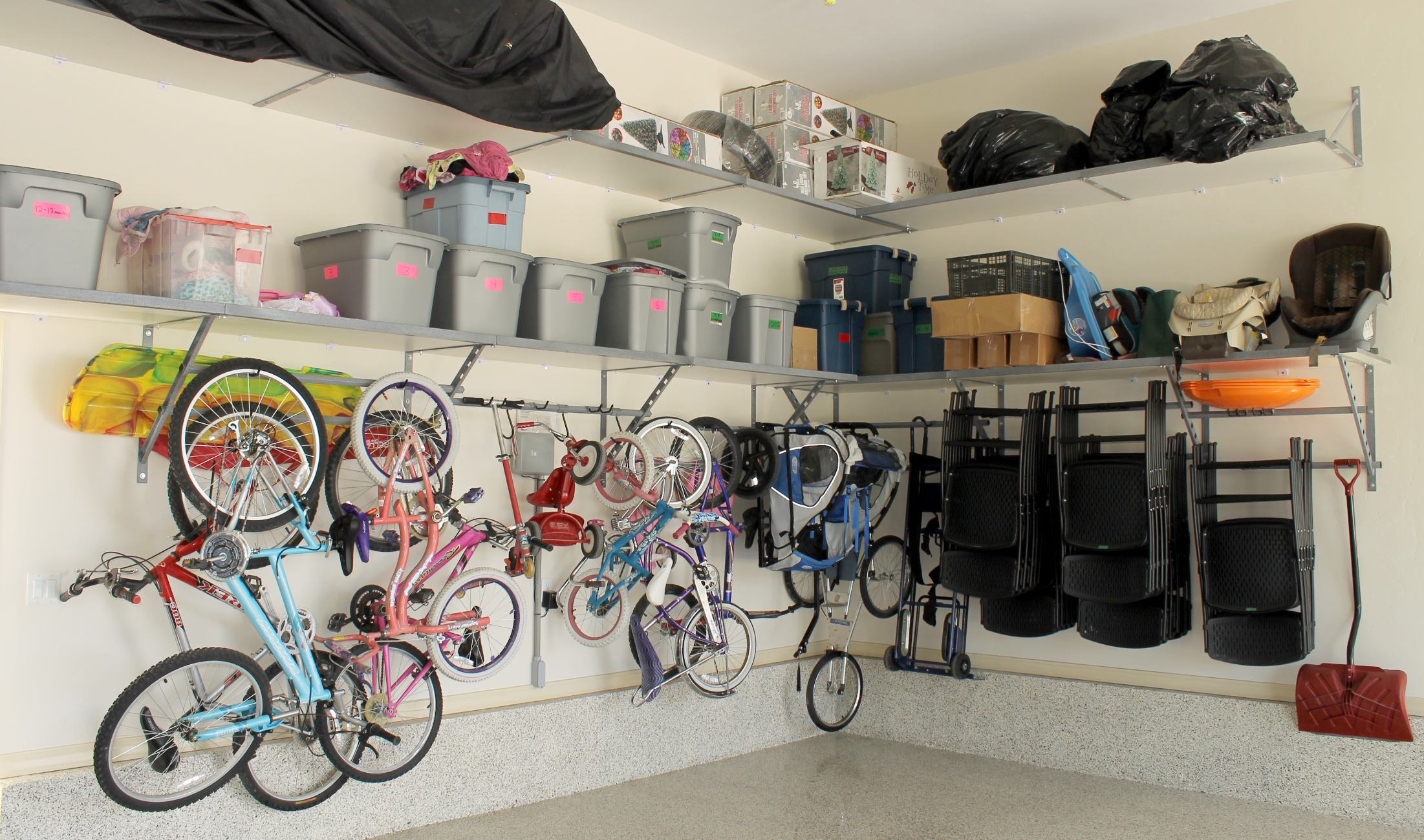 Since I could remember we had designated days every year to clean out the garage. Getting the family involved is the best way to keep your garage organized. After all, it’s not just your stuff stacked in thereJ. Make it a fun project and lesson for the kids, teaching them the proper way to stay organized by creating designated places for their things to go. This is a fun way to not only get everyone involved, but to get everyone on the same page. Have each member of the family pick a place to store their belongings; designating those areas just for them so there is no confusion on where to find things.