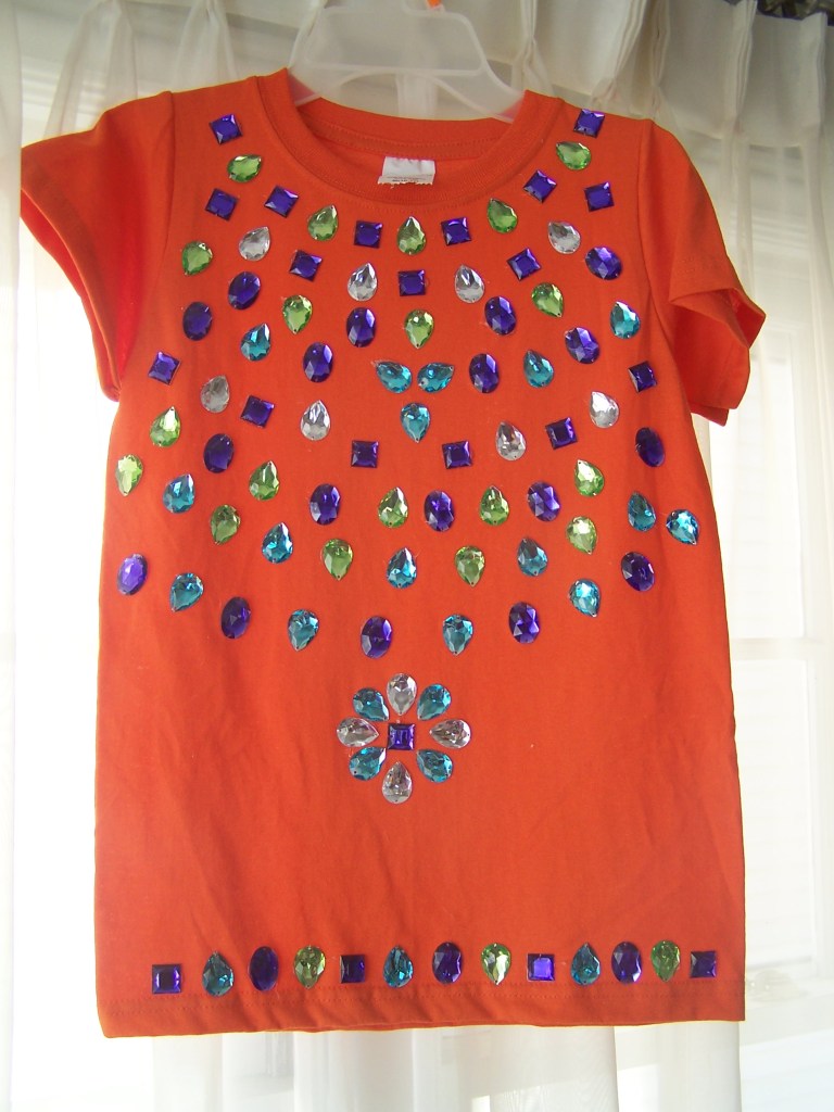 I purchased my first hot glue gun, an exciting moment in a mom’s life (especially a mom that can’t sew, but I am hoping to learn). I also purchased a youth shirt and 100+ jewels to glue onto the shirt, it looked cool and our daughter was ecstatic and eager to wear it to school.